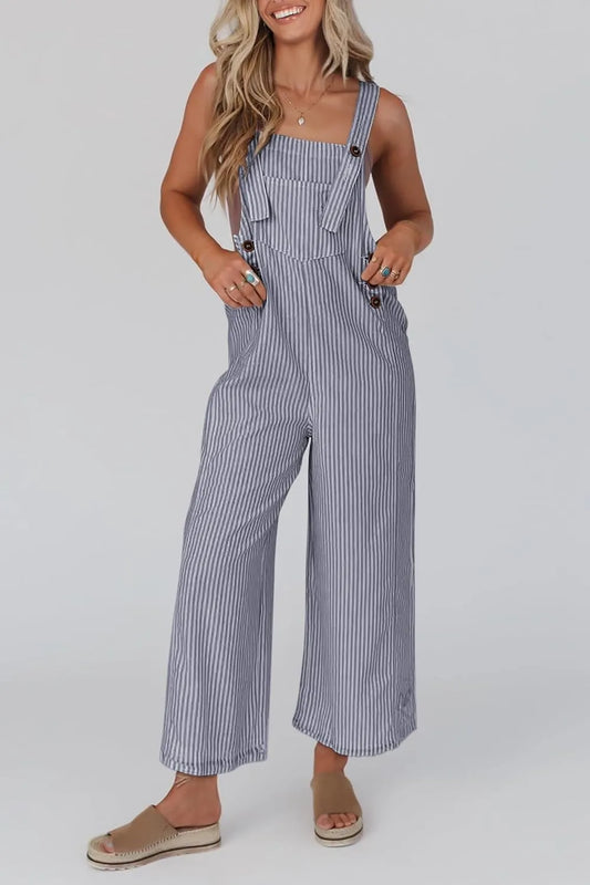Erin™ - Women's Button Striped Wide Leg Jumpsuit