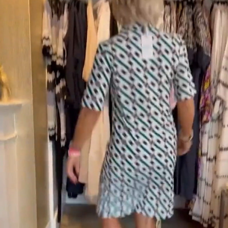 From boardroom to brunch, the Pamela Shirt Dress blends structured elegance with breezy comfort. Featuring a crisp shirt collar, eye-catching geometric prints, and a flattering silhouette, this piece redefines effortless dressing for the modern woman.